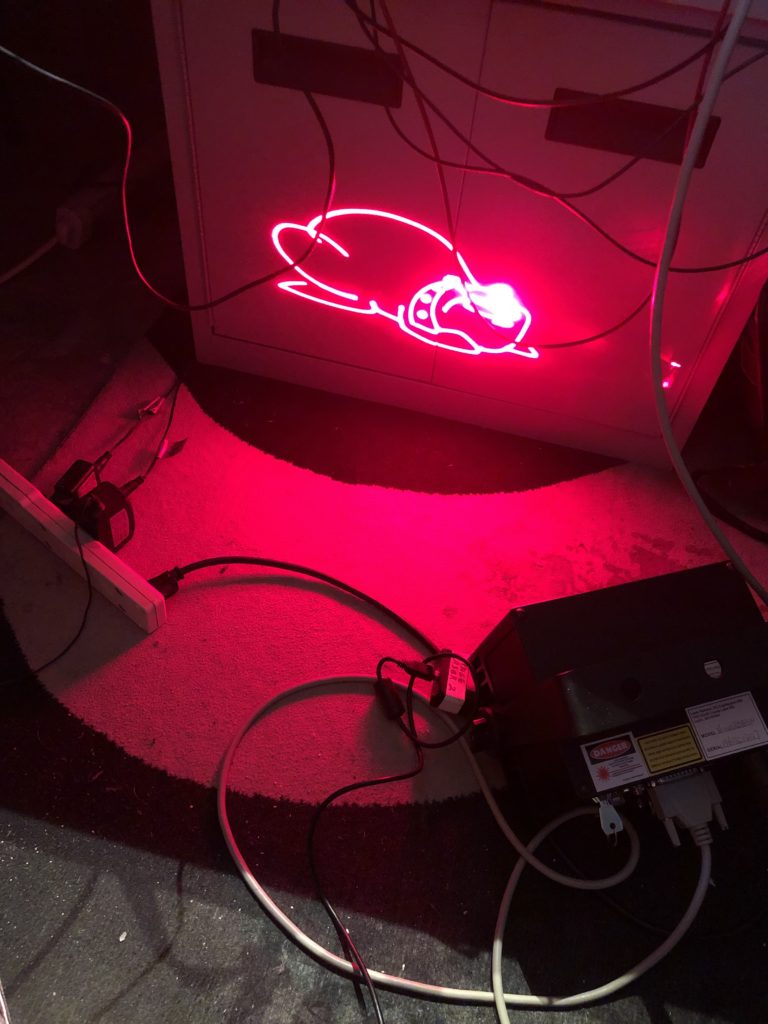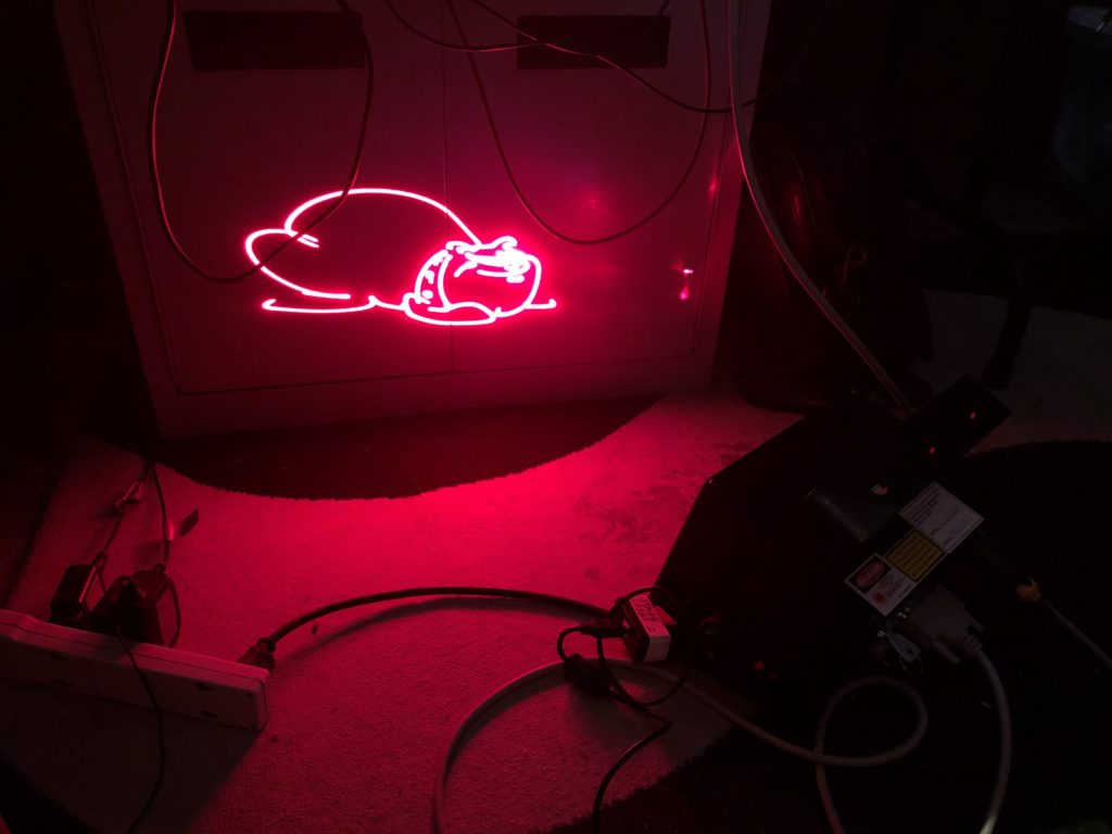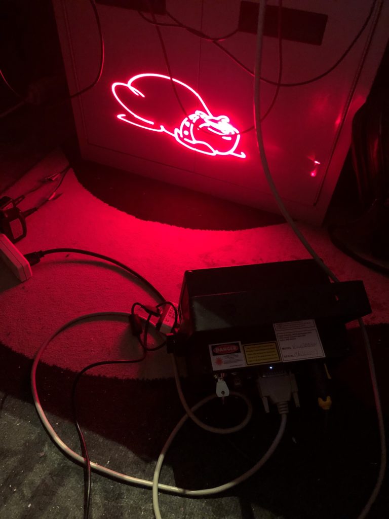 Set the scan rate down to 14 kHz (what the image was originally drawn for), and hooked up the laser projector: