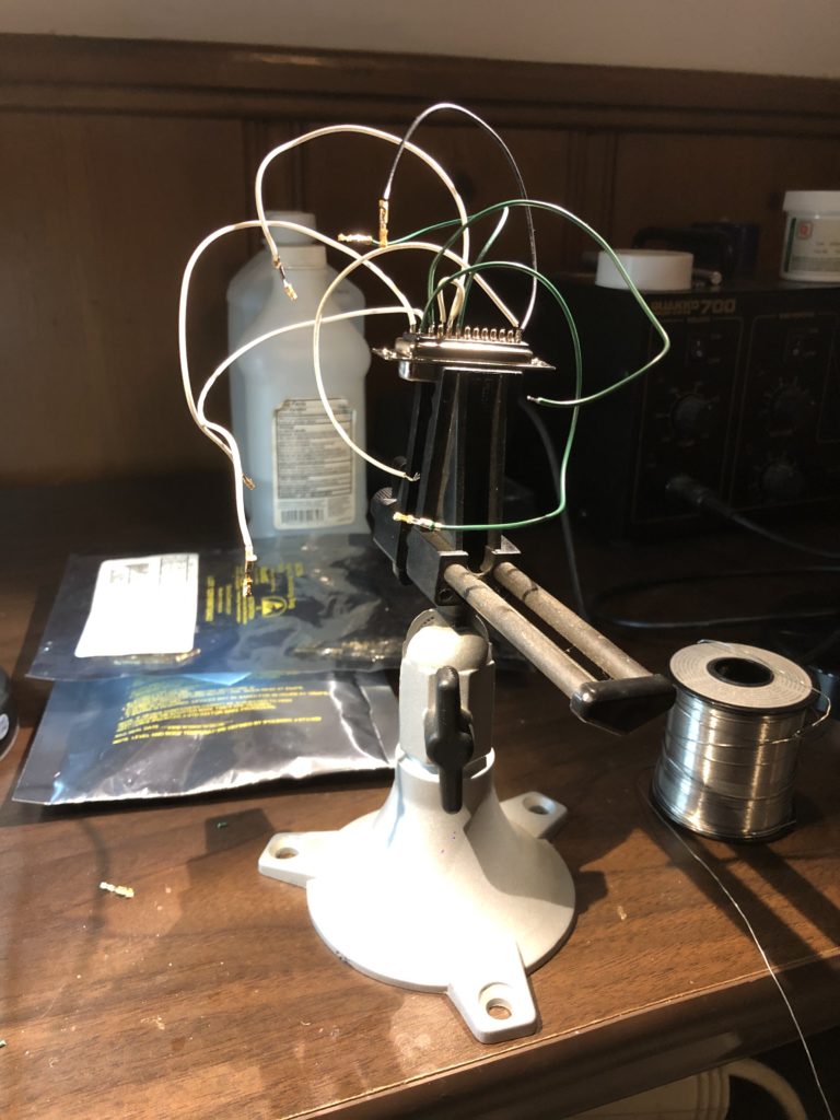 So I threw together a super kludgy DB-25 wire harness (reminiscent of a spider in honor of the lab mascot who came with the loaned projector):