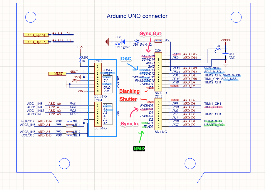 In the last post we sketched out our basic Arduino Uno compatible “shield” board for ILDA projector control. I then indicated that I would start converting that sketch into a proper schematic next. I did begin that process, but when I work on hardware designs I try to also give some thought to how software/firmware will interact with it.