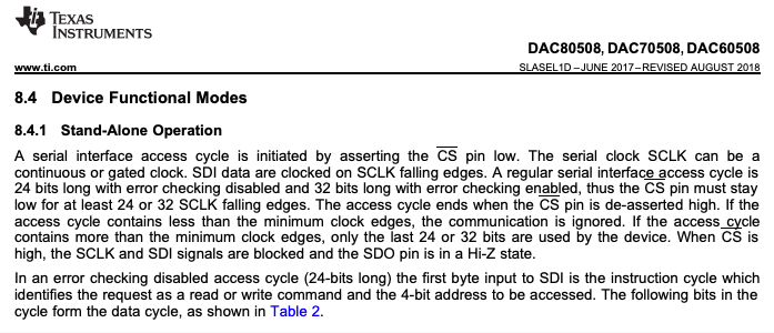 Further, if we look at the operating modes of the TI DAC, the only one really suitable for our purposes is ‘stand alone’: