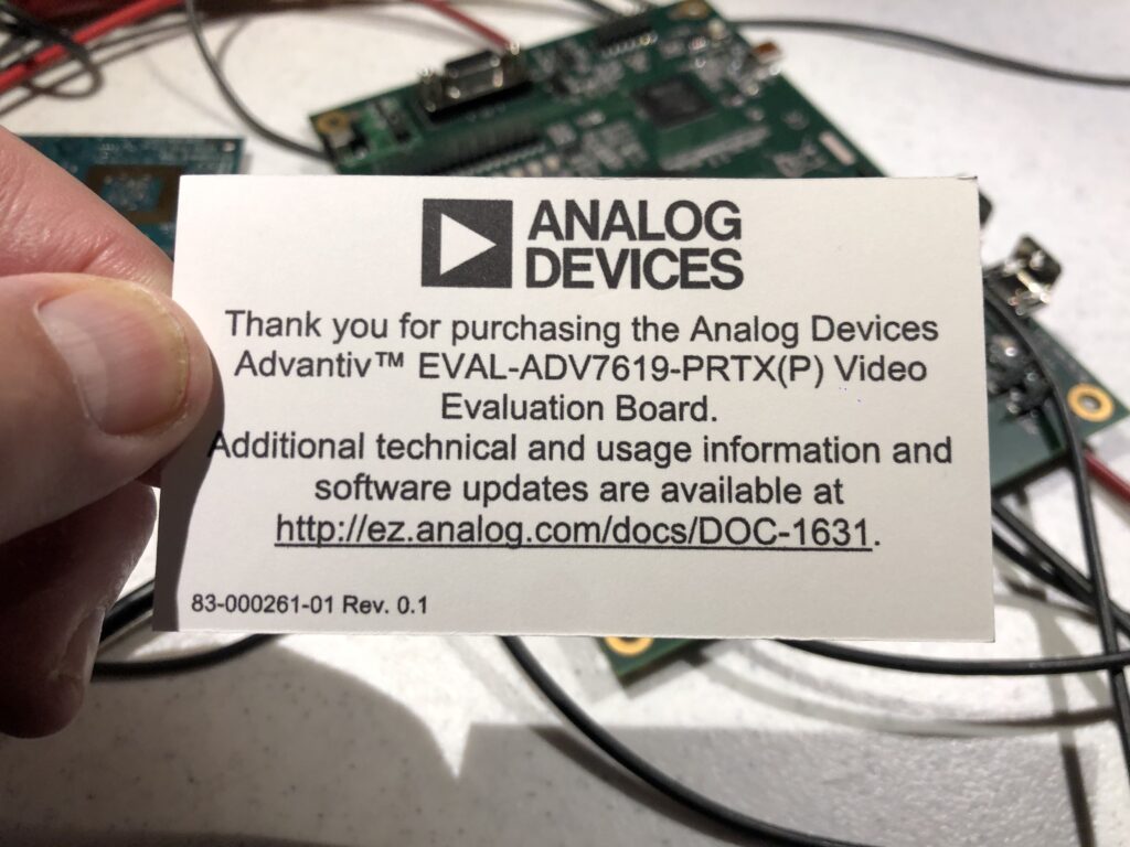 We could just open a monitor and tap into the vertical sync line from whatever decoder it is using. That’s not a bad way to go, but I wanted to study HDMI more closely and have more options for control, so I picked up this eval board, though not from Digikey. At that price I might have just sacrificed a monitor. Still, it’s a pretty neat little setup: