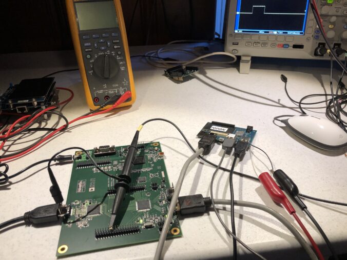 We could just open a monitor and tap into the vertical sync line from whatever decoder it is using. That’s not a bad way to go, but I wanted to study HDMI more closely and have more options for control, so I picked up this eval board, though not from Digikey. At that price I might have just sacrificed a monitor. Still, it’s a pretty neat little setup: