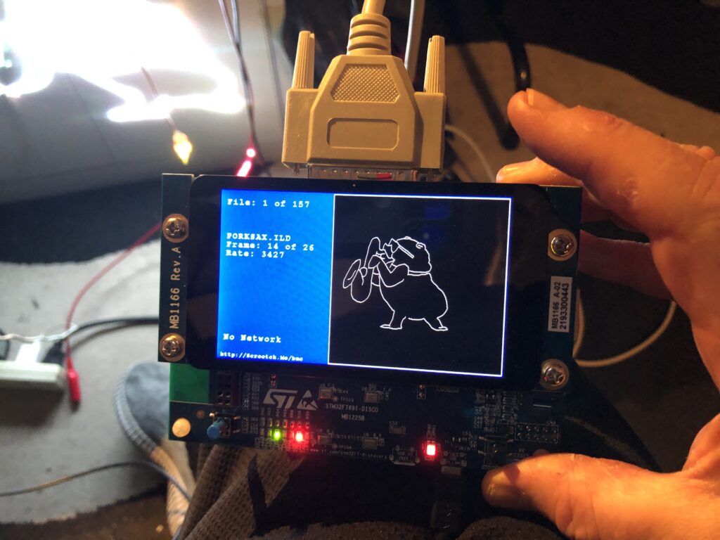 I tried a quick hack with a cheap HDMI->VGA adapter, but that’s not going to get us where we need to be, so I’ll be digging in and doing a proper sync soon. Still, a fun few hours today. More soon!